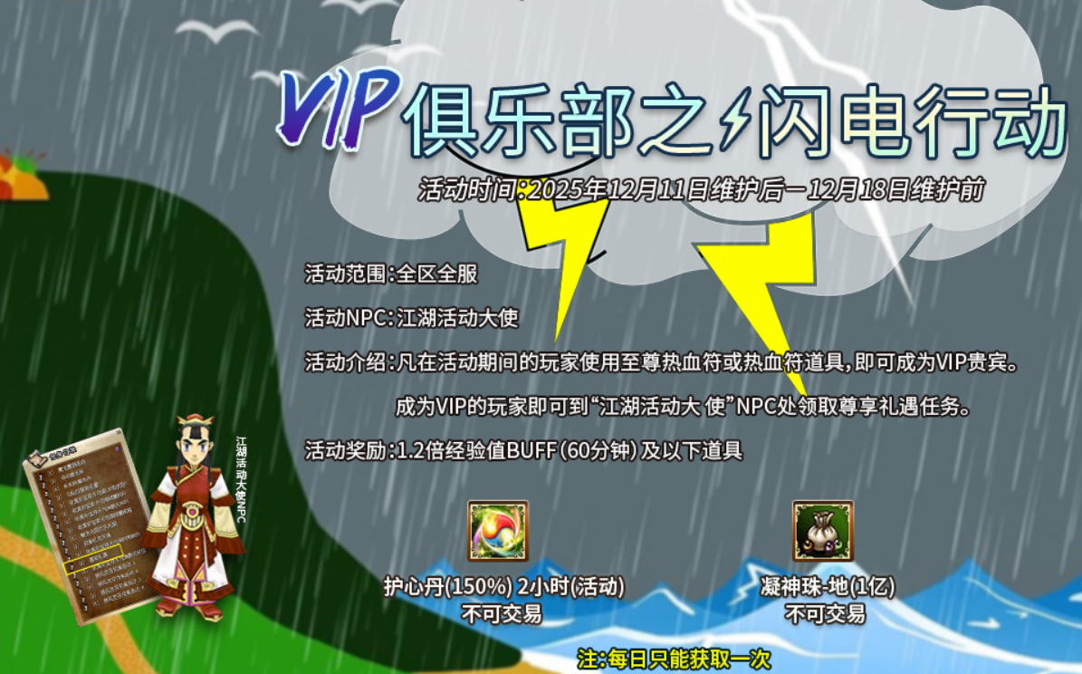 正文 本周活动详情-2025年12月12日 rxjh V管理员 /12-12/395阅读/0评论 1212 本周活动详情-2025年12月12日简报2025年12月第2周,本周共4个活动:看点:【抱歉,本周没亮点,关注 凤舞九州&义薄云天 合服情况】★电信五区【凤舞九州】【义薄云天】合并说明公告★热血江湖合服相关说明01.百宝道具齐登场02.道具打折活动开启03.逆天战狂丹(12)属性大提升04.ViP俱乐部之闪电行动 -- 展开阅读全文 --